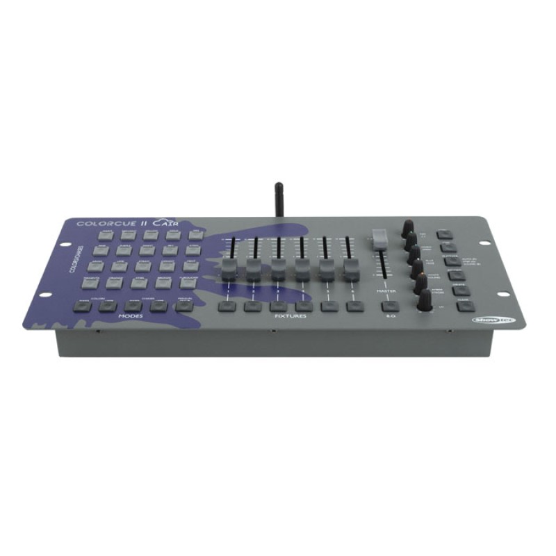 The Showtec ColourCue 2 Air is an intelligent 6-fader LED DMX controller with 36 channels for wirelessly controlling the light output of LED fixtures with up to 6 colours (RGBWA-UV), suitable for any venue. Its 6 potentiometers enable you to quickly tune the lights to your desired colour, from 3-colour RGB to 6-colour RGBWA-UV. The ColourCue 2 Air enables you to create your own 20 preset colours and you can choose between 20 fixed colours. You can create up to 20 programs (chases) with each up to 99 steps for changing colours and effects in a loop. The chases can be controlled in Manual, Auto-run, or Sound-controlled mode. The wireless DMX capabilities and internal battery, good for up to 12 hours of operation, completely omit the need for running cables to the controller, which is ideal in a temporary setup!