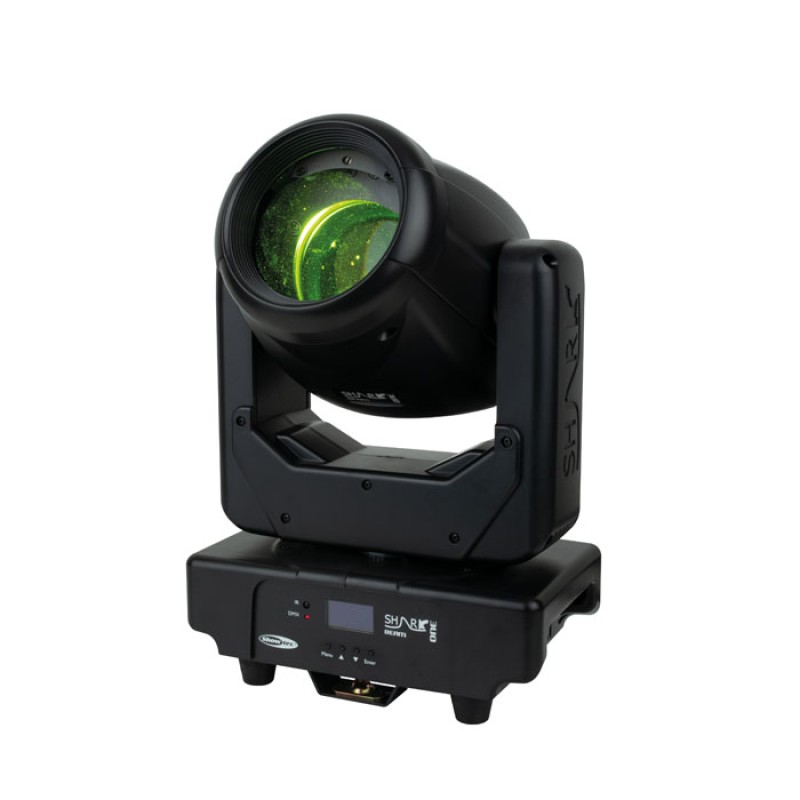 The Showtec Shark Beam One is a 90-watt LED beam moving head with a beam angle of just 3° and a number of impressive effects on board. Thirteen colours plus open and a 8-facet rotating prism allow it to put on colourful, dynamic light displays. No fewer than eleven gobos add amazing effects to the mix, while the motorised focus allows images to look razor sharp. The Shark Beam One is also dimmable and it’s capable of producing frost and flower effects too. It can run in DMX, auto or sound modes as a master or slave, or it can be operated using the included remote control.