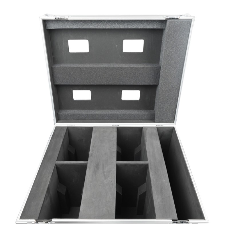 The Showtec Case for 4x Phantom 100 / 130 / 3R is a dedicated Flight Case for quick and safe transport and storage of four 100 Spot, 130 Spot, 3R Beam or 3R Hybrid fixtures, including dedicated cables and other accessories. Equipped with custom hard foam, the fixtures fit tightly to prevent damage through unwanted internal movements. The Case for 4x Phantom 100 / 130 / 3R has swivel wheels with brake for quick, safe and lightweight transport. Each component is designed to survive the rigors of frequent touring.