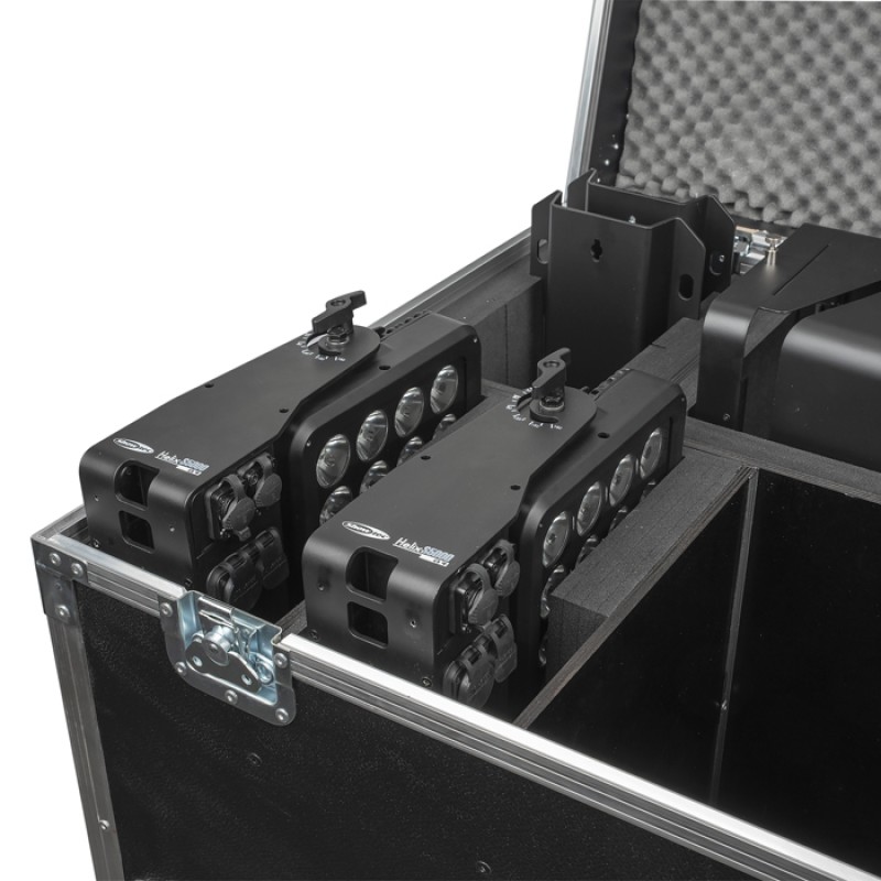 Flightcase for 4 pcs Helix S5000 with separate compartments for the corresponding optional accessories. Four mountingbrackets, four tophats, four barndoors, eight beamshapers and room for clamps, cables, quicklocks and safety cables. The perfect transportation method to make sure that your Helix units stay safe and complete on the road.