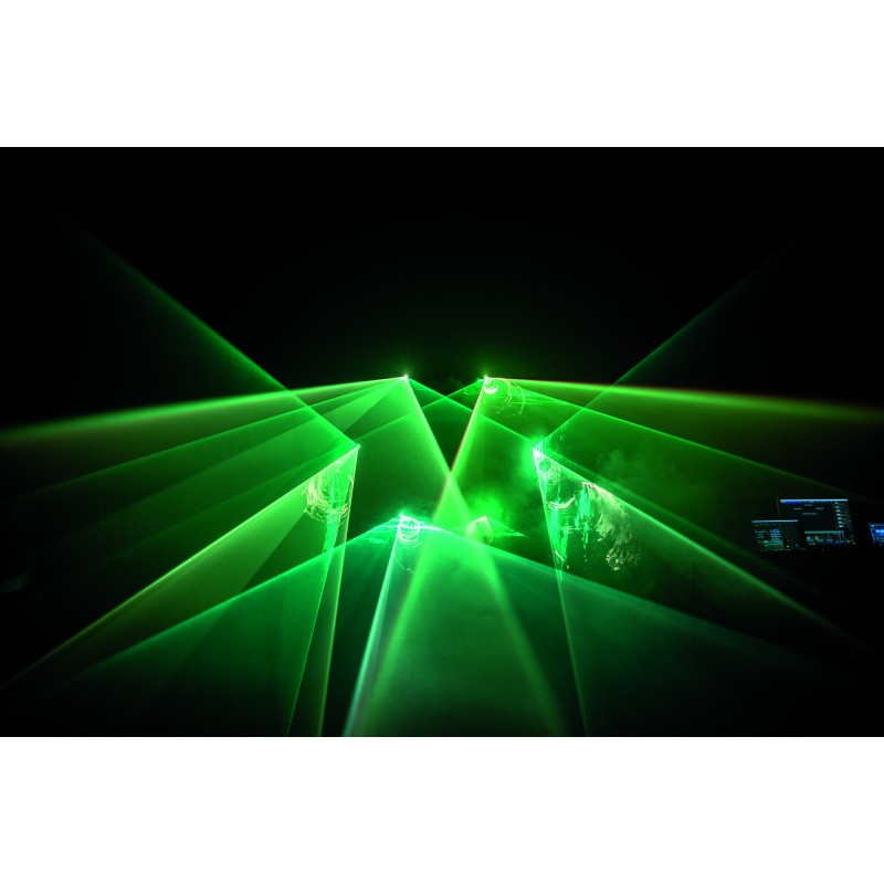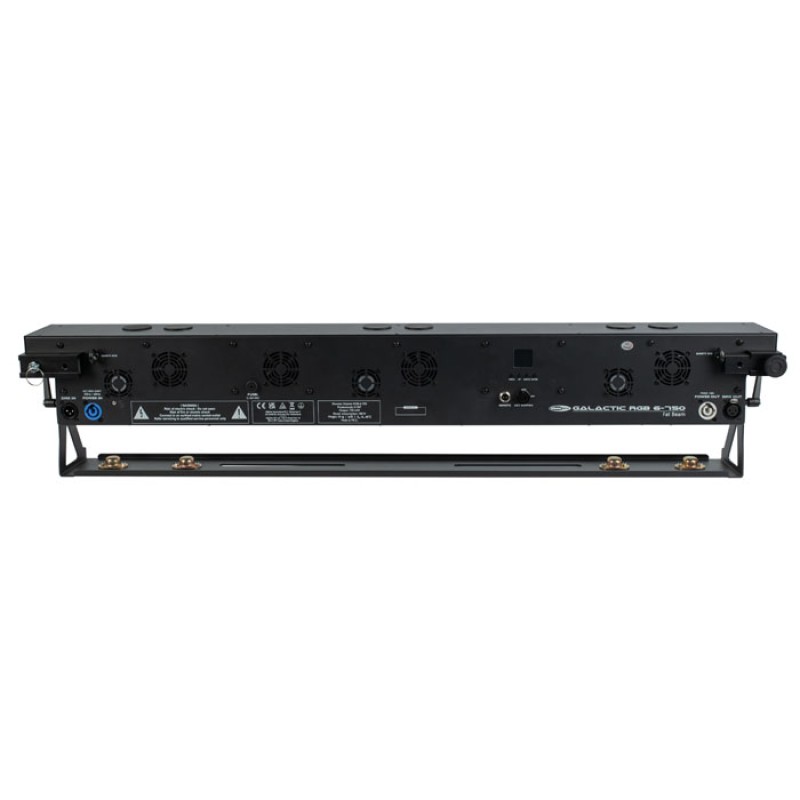 The Galactic RGB-6-751 is a powerful laser bar with six individually controllable full-colour fat beam lasers and a total laser power of 600 mW for indoor venues. The six fat beam lasers create a noticeably thicker laser beam than usual. By using analogue dimming of each of the individual red, green, and blue laser units, the full spectrum of colours can be created with each individual beam. The Galactic RGB-6-751 offers auto, colour, master/slave, and DMX-512 control modes. It has 32 internal patterns available, which can be selected through DMX. Intensity, zoom, and 3-axis rotation effects offer many additional effect possibilities.
